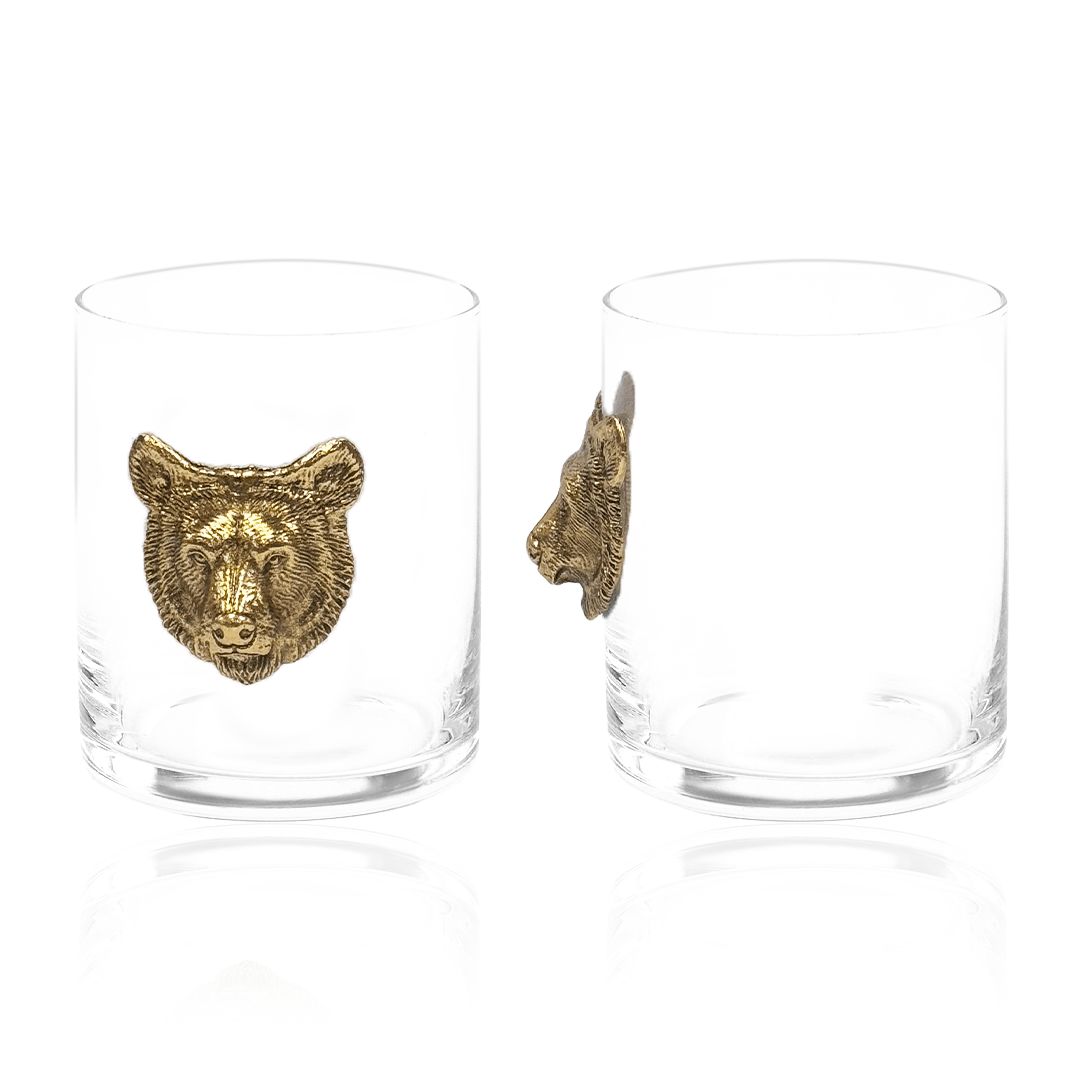 A whiskey glass that's crafted with masterful quality for your bold spirit & bold taste in whiskey. These 13oz crystal clear glasses proudly display a majestic gold bear, creating a statement of sophistication for your sipping experience. The thick round base of the glass provides a sturdy weight for unwavering durability and a substantial feel as you hold the glass in your hands.