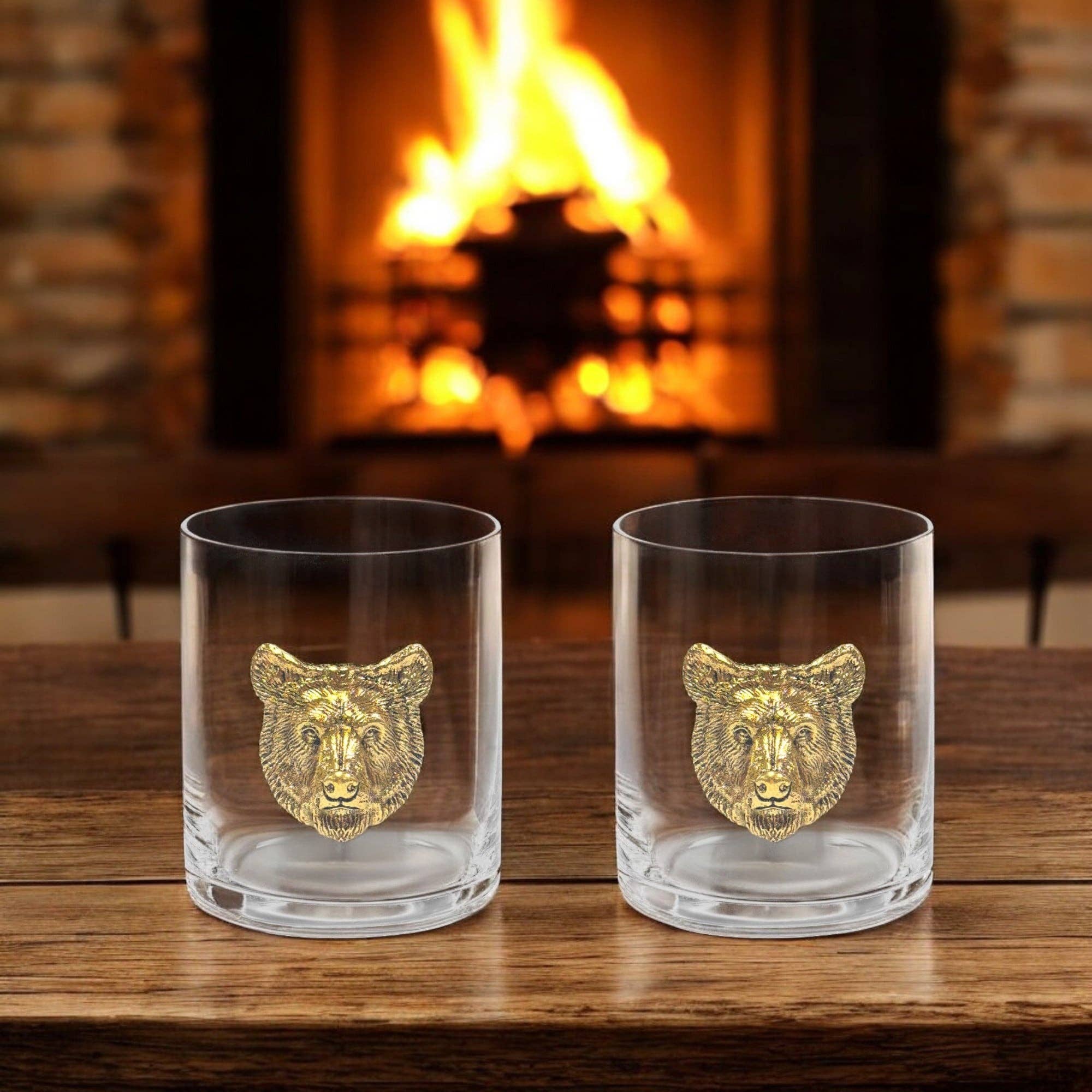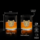 A whiskey glass that's crafted with masterful quality for your bold spirit & bold taste in whiskey. These 13oz crystal clear glasses proudly display a majestic gold bear, creating a statement of sophistication for your sipping experience. The thick round base of the glass provides a sturdy weight for unwavering durability and a substantial feel as you hold the glass in your hands.