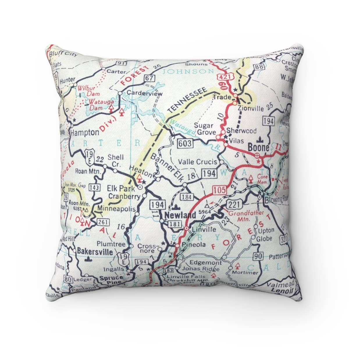 Daisy Mae Designs - Banner Elk North Carolina Map Decorative Pillow Throw Pillow