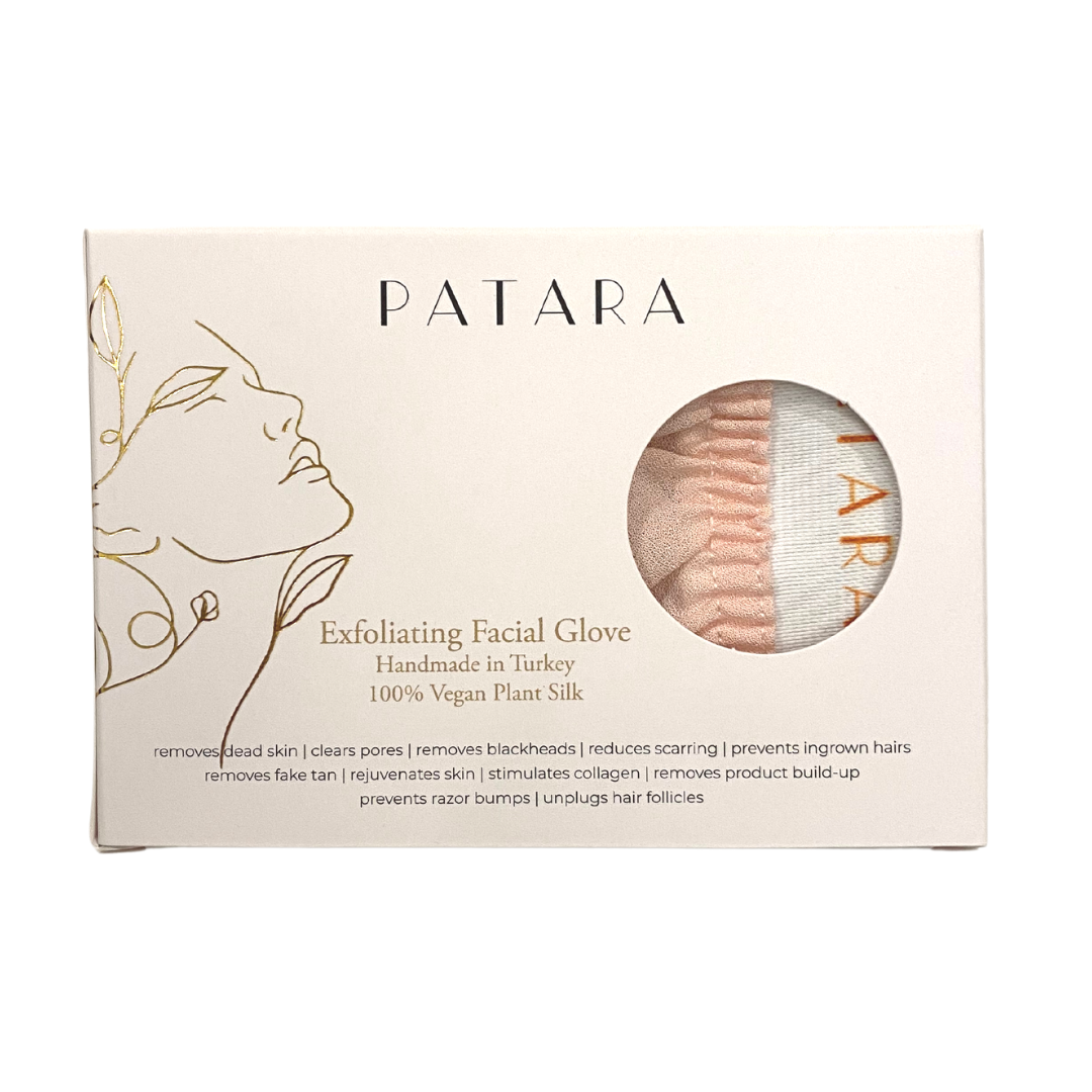 This unique tool derived from the ancient Turkish ritual, Hammam, grabs dead and dry skin cells with superior exfoliation. Made of 100% vegan floss fibers along with our unique handmade weaving process, it cleans impurities trapped in your pores and removes product build-up (oil, soap, lotions, etc.). Patara Exfoliating Facial Glove prevents ingrown hair and improves circulation. After your first use, your skin will instantly feel smoother, healthier and look more radiant. With regular use, you will have glowing, healthy skin. We recommend using it 1-2 times per week. Other benefits of the Patara Exfoliating Facial Glove include: -Visibly removes layers of dead skin instantly -Stimulates collagen production, promoting healthier, smoother, and younger-looking skin -Removes fake tan -Helps prevent razor bumps and ingrown hair -Dermatologist Recommended and Hypoallergenic 100% Vegan Silk