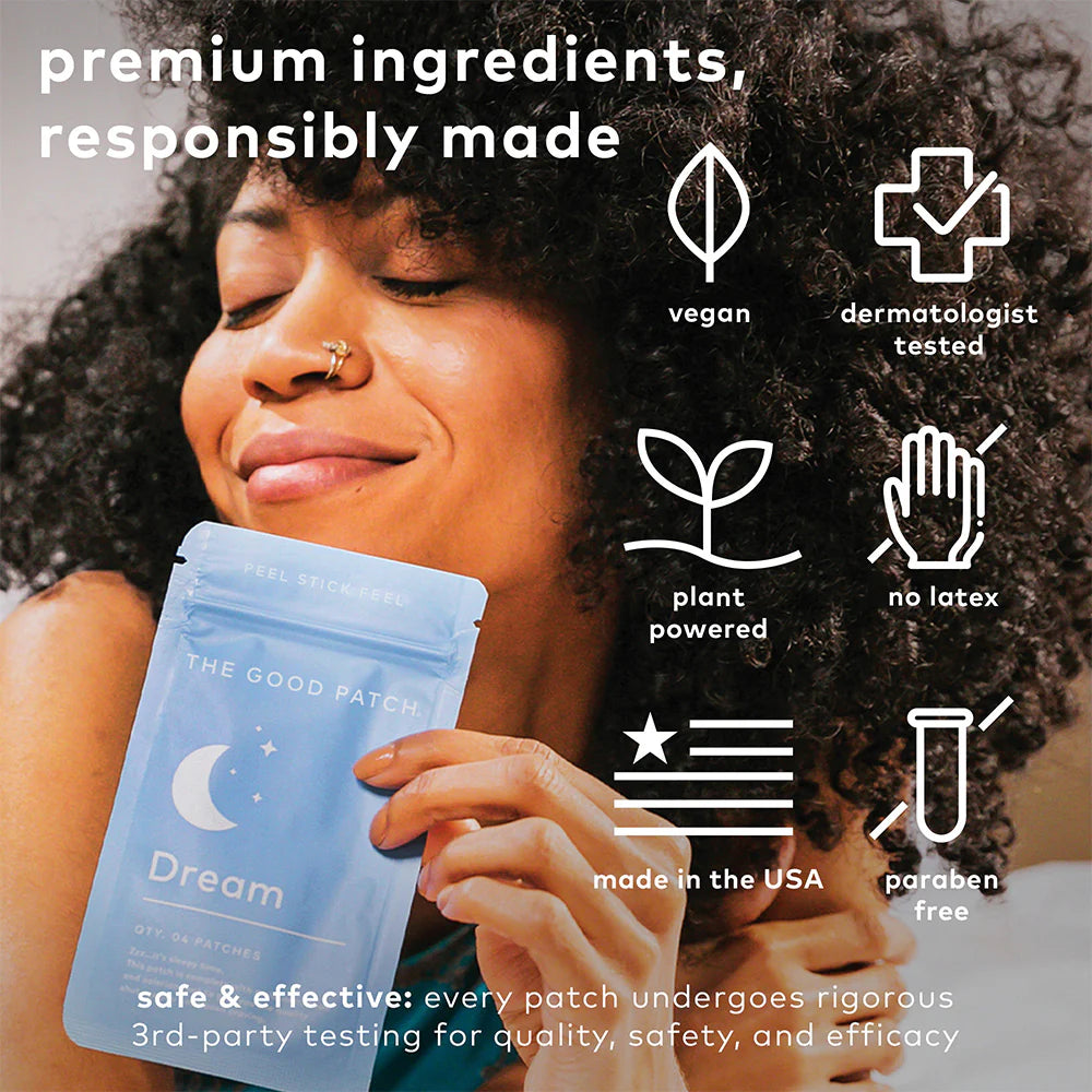 A plant-powered wearable wellness patch for sleepytime. Infused with Melatonin, Hops, and Valerian Root. Perfect for beauty rest, travel, or even just a good nap.