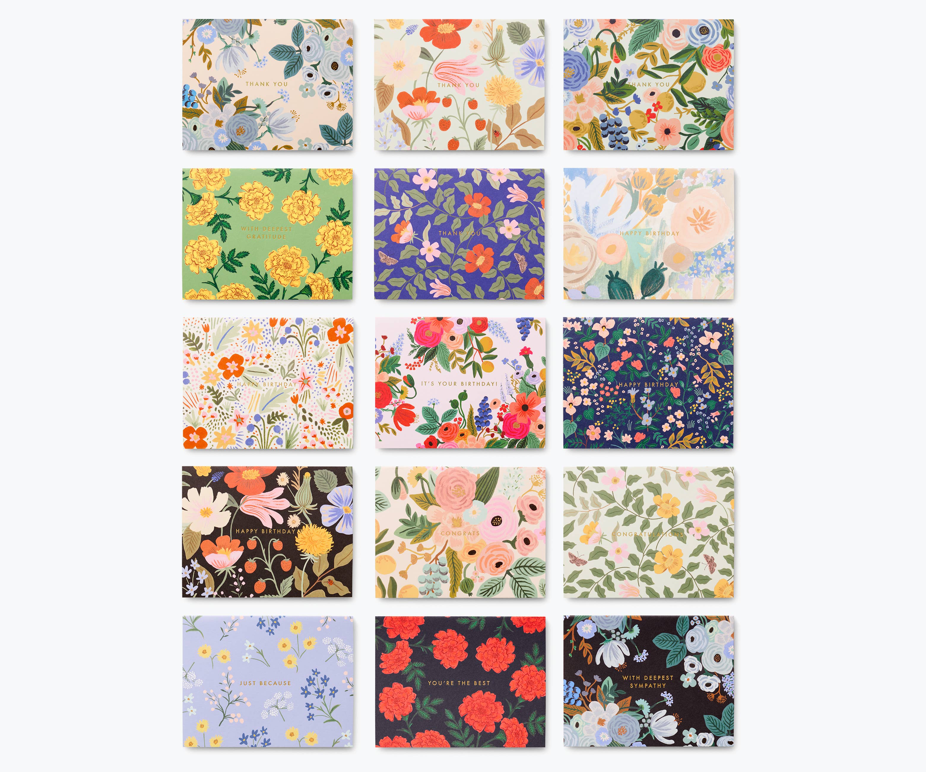 Rifle Paper Co. - Mixed Florals Essentials Assorted Card Box, 15 Cards