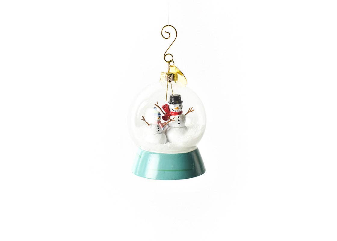 Look at Frosty go this season with our Frosty Snow Globe Shaped Ornament! This mint-green ornament captures the whimsical snowy scene of two smiling snowpeople wrapped in warm scarves and hats. Hang it on the tree with our signature gold swirl hook, or show it off around the house for everyday décor. Make magical memories with this happy ornament design.  Product Dimensions: 2.25inL x 3.5inW x 2.25inH