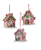 3.5"GINGERBREAD LED CANDY HOUSE ORNAMENT 3/ASSTD. USES 3 "LR44" BATT. (INCL).