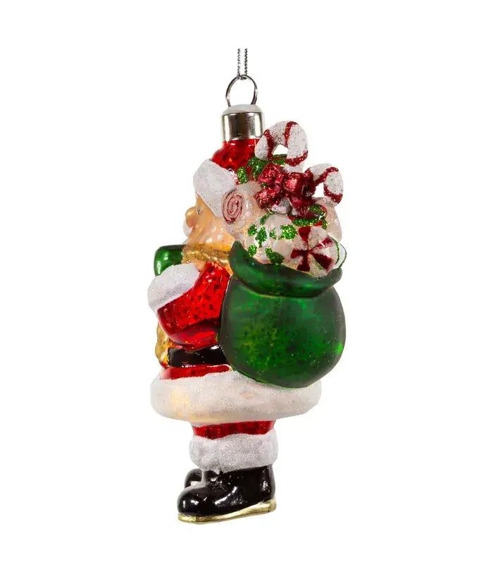 Kurt S. Adler, Inc. - 5"USB PRELT SANTA W/GFT BAG GLASS ORNAMENT
