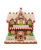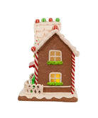 9“LIGHT UP CLAYDOUGH TWO FLOORS GINGERBREAD HOUSE W/GINGERBREAD MAN & TREES TABLEPIECE. INCLUDES 1 WARM WHITE 5MM LED. USES 3 “AA“ BATT. (NOT INCL).