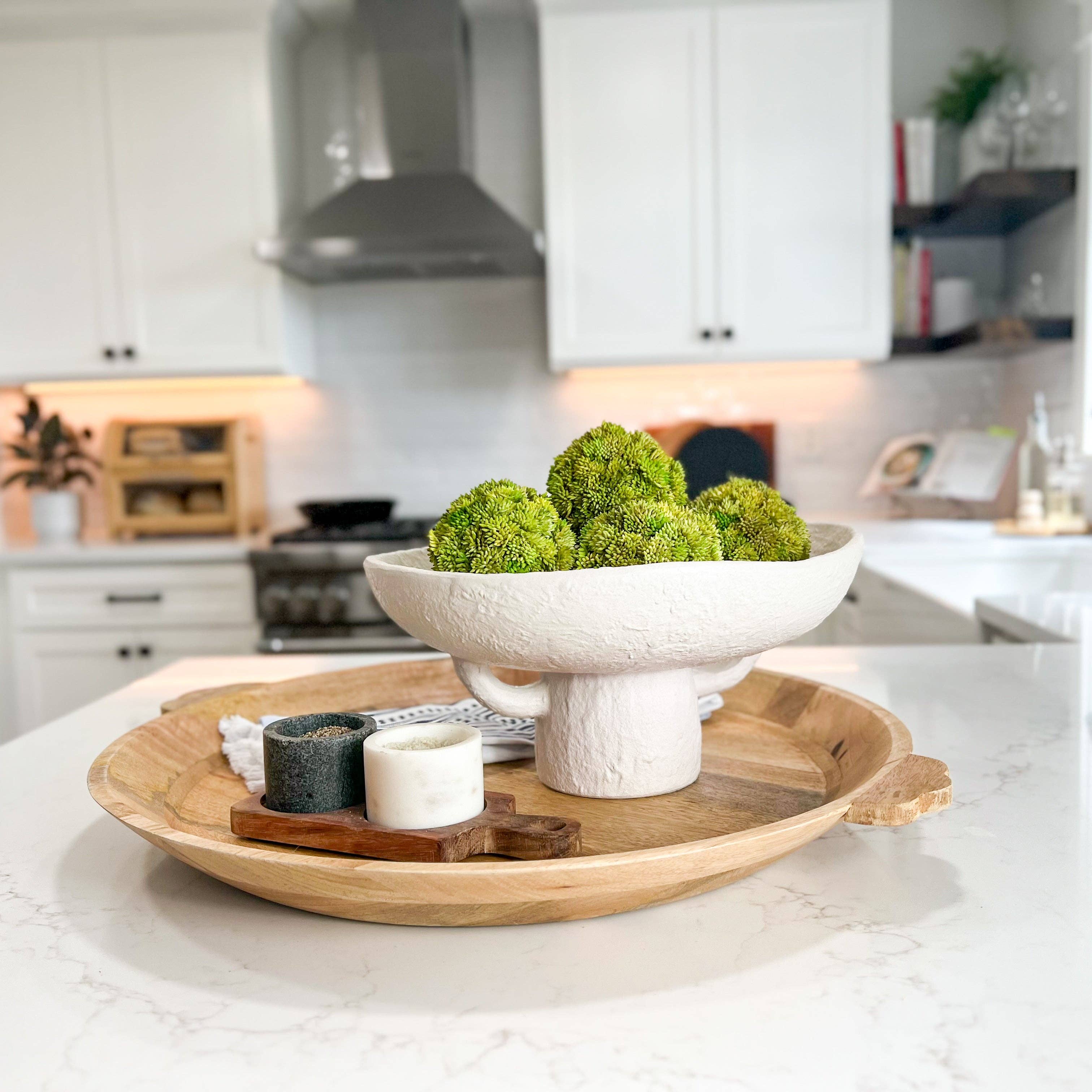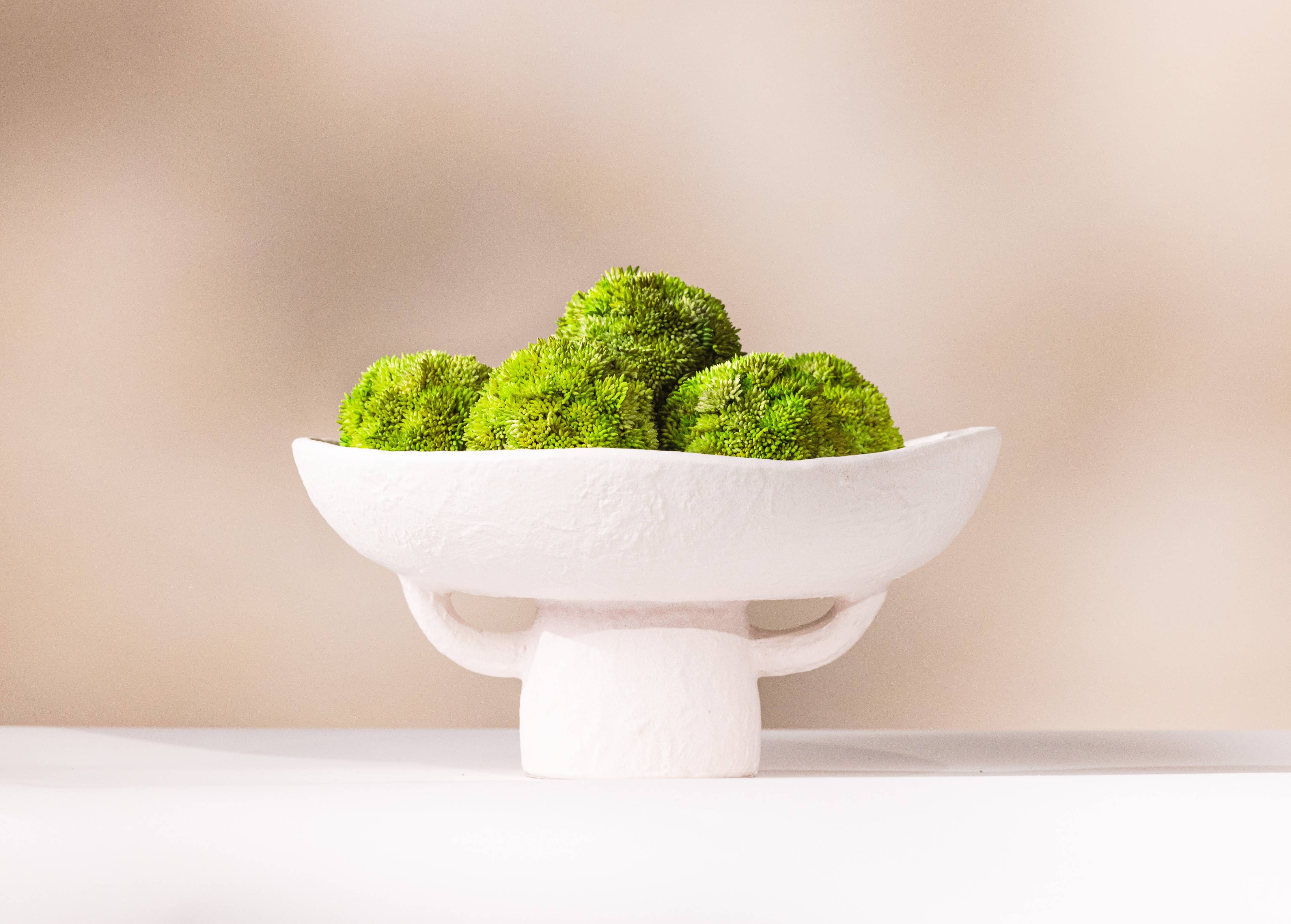 Laurel and Vine Decor LLC - Santorini Bowl – Ceramic Bowl & Faux Succulent Set, White