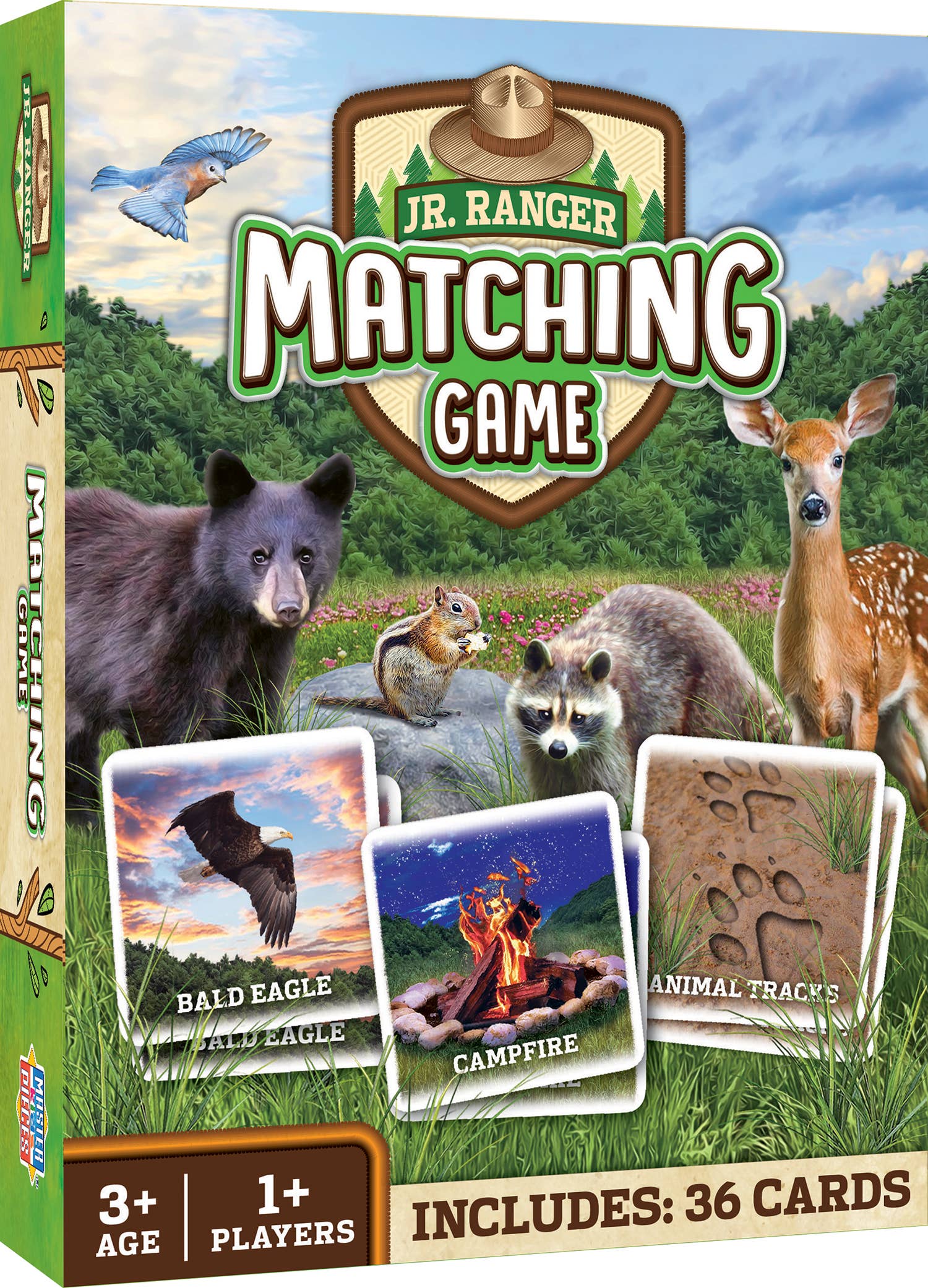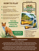Enjoy challenging your memory and having fun with the Jr. Ranger National Park Matching Game by MasterPieces. This game is perfect for family game night or campsite fun. It includes 18 matching pairs featuring the most popular animals and activities from America’s National Parks. Improve your memory by taking on this challenge and have fun trying to find the pairs. Collect the most matches by the end of the game, and you win! The Jr. Ranger National Park Matching Game is for ages 3+, making it perfect for kids and families. It's sure to be a hit and you'll have a blast competing to find the most matches! So bring the Jr. Ranger program to life and have some fun with this National Park Matching Game by MasterPieces. Can you remember where the match is?