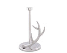 An antler curves up the side of the paper towels as multiple points branch off its beam like an erupting flame. The handcrafted, aluminum design offers a unique, refined look to any countertop.