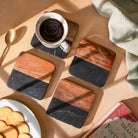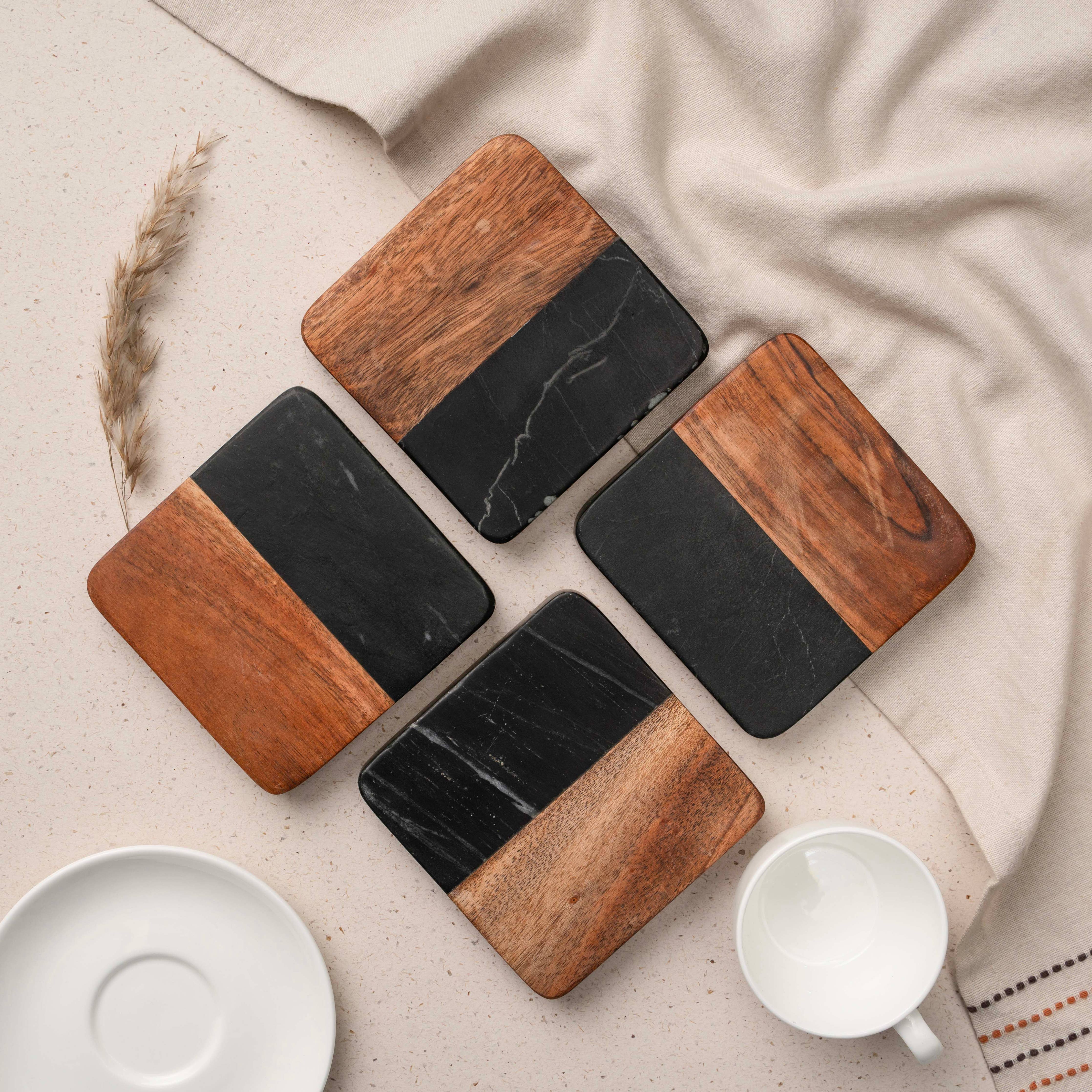 LuxeDesigns Co LLC - Artisan Marble and Wood Square Coaster Set of 4 - Black