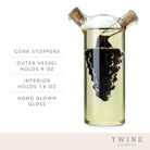 A beautiful addition to any kitchen, our Grapevine Cruet serves oil and vinegar from the same bottle. With cork stoppers and a grape-bunch motif, it's perfect for any wine lover. 2 in 1 hand-blown glass.