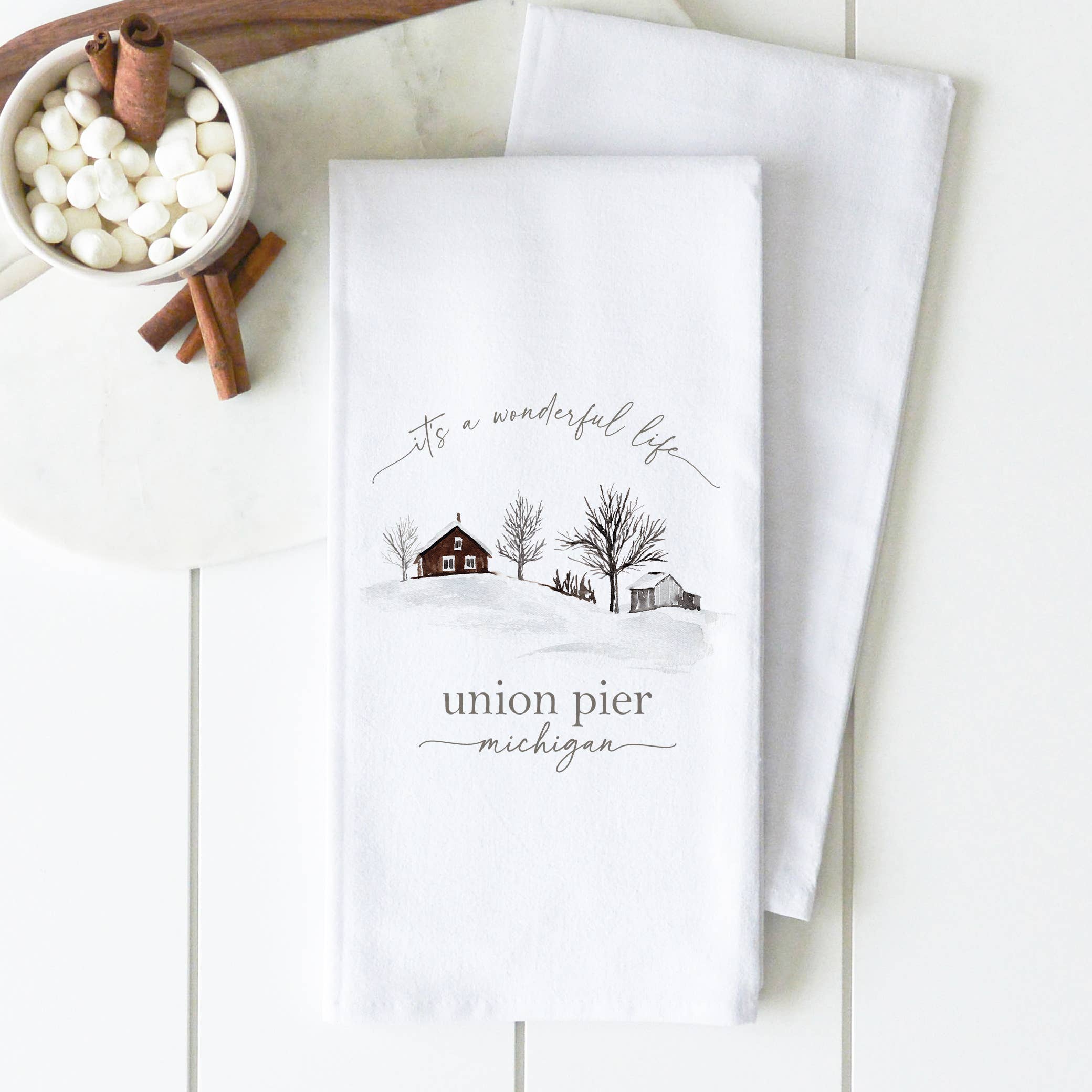 Porter Lane Home - Custom Banner Elk It’s a wonderful life Tea Towel