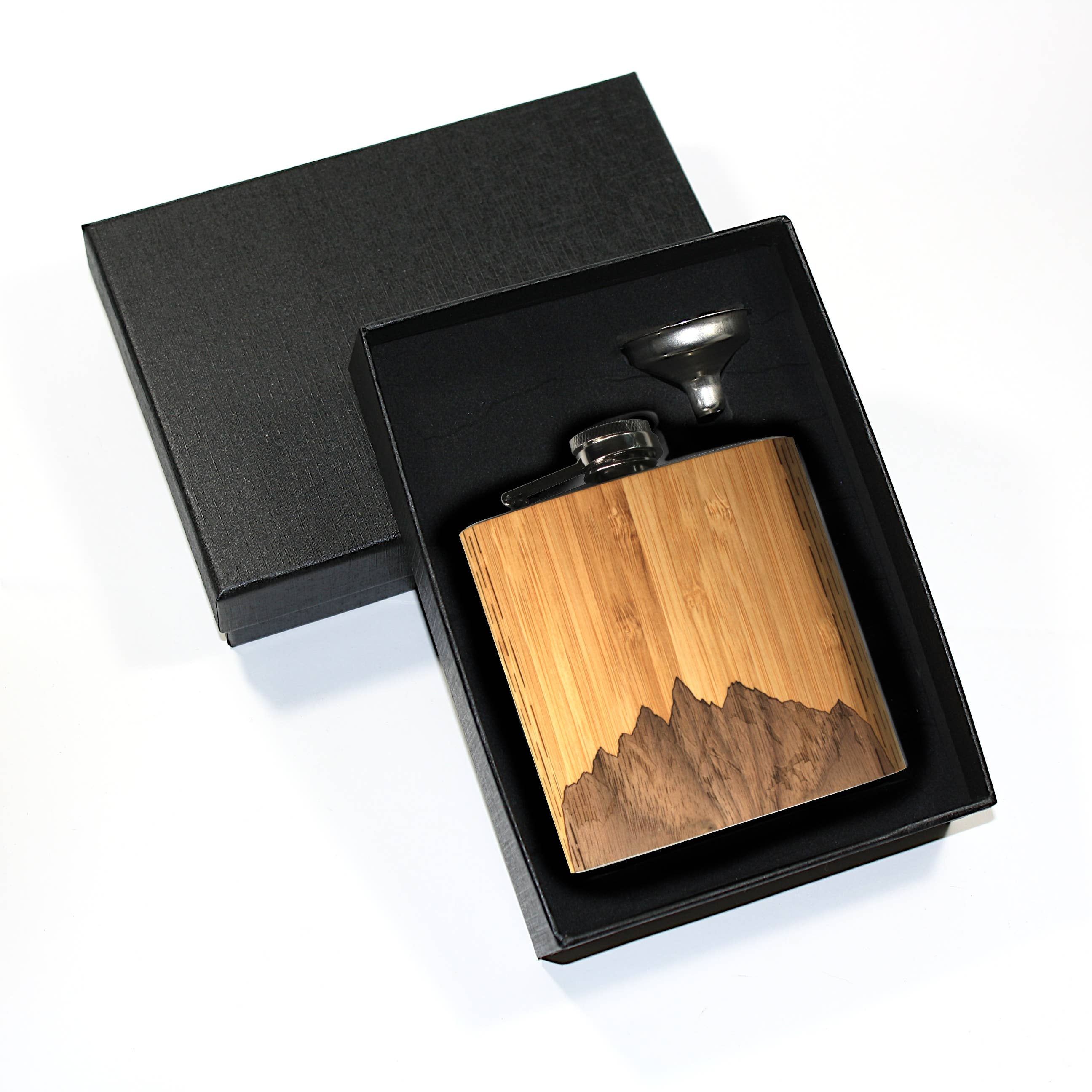 Wooden Hip Flask Mountains