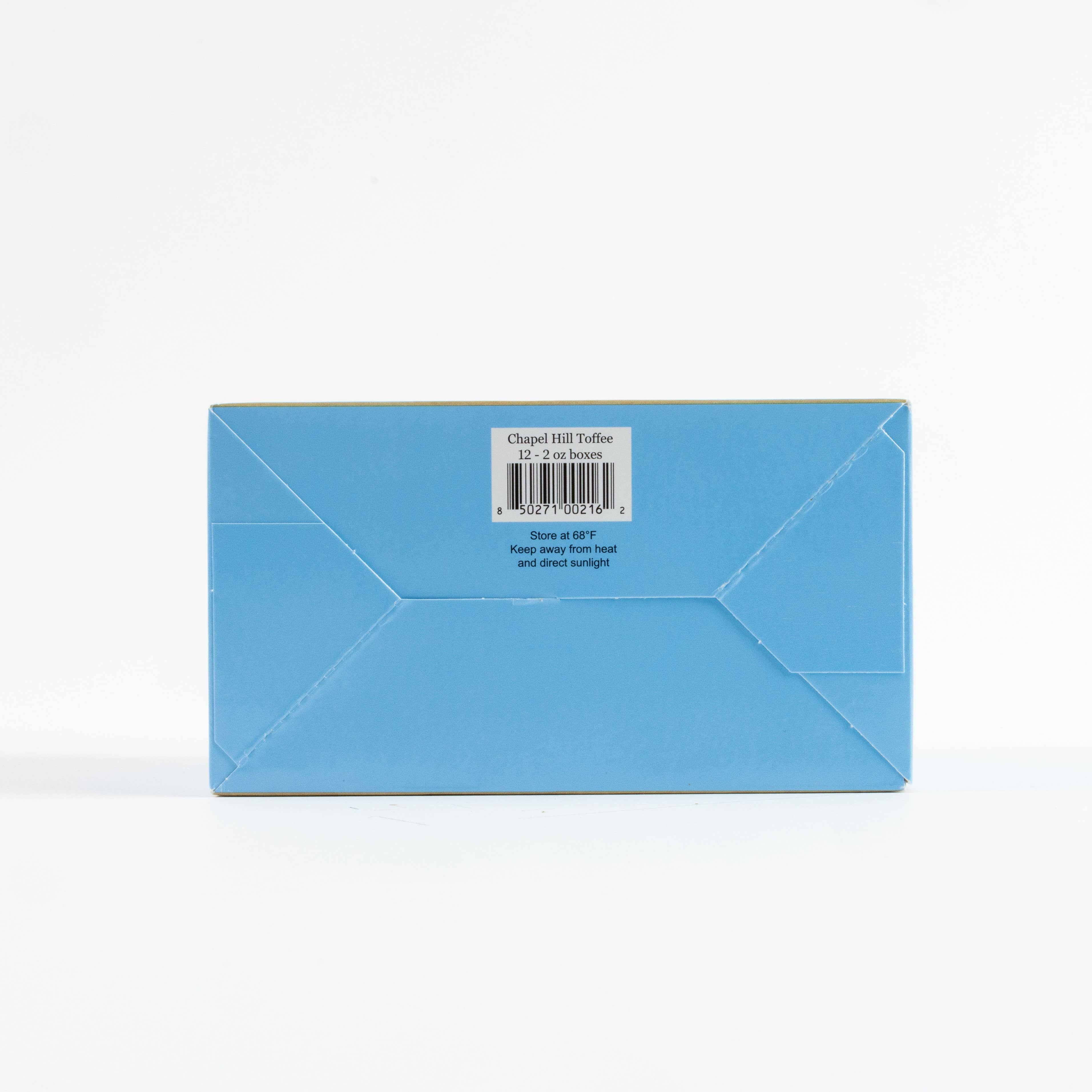 Two 12-unit displays of of 2-oz boxes (1 case) of our handcrafted, gourmet Chapel Hill Toffee. Made with the finest ingredients for a taste experience that is both nostalgic and indulgent.