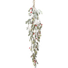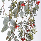 A garland featuring eucalyptus leaves and evergreen berries. Perfect accent for any table or mantel during the holiday and winter seasons.