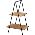 A decorative tiered tray featuring two wooden tiers in a ladder-shaped design. Our Two Tiered Wood Ladder is perfect for display small items in store or at home. Assembly required.